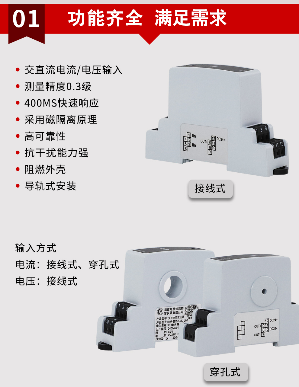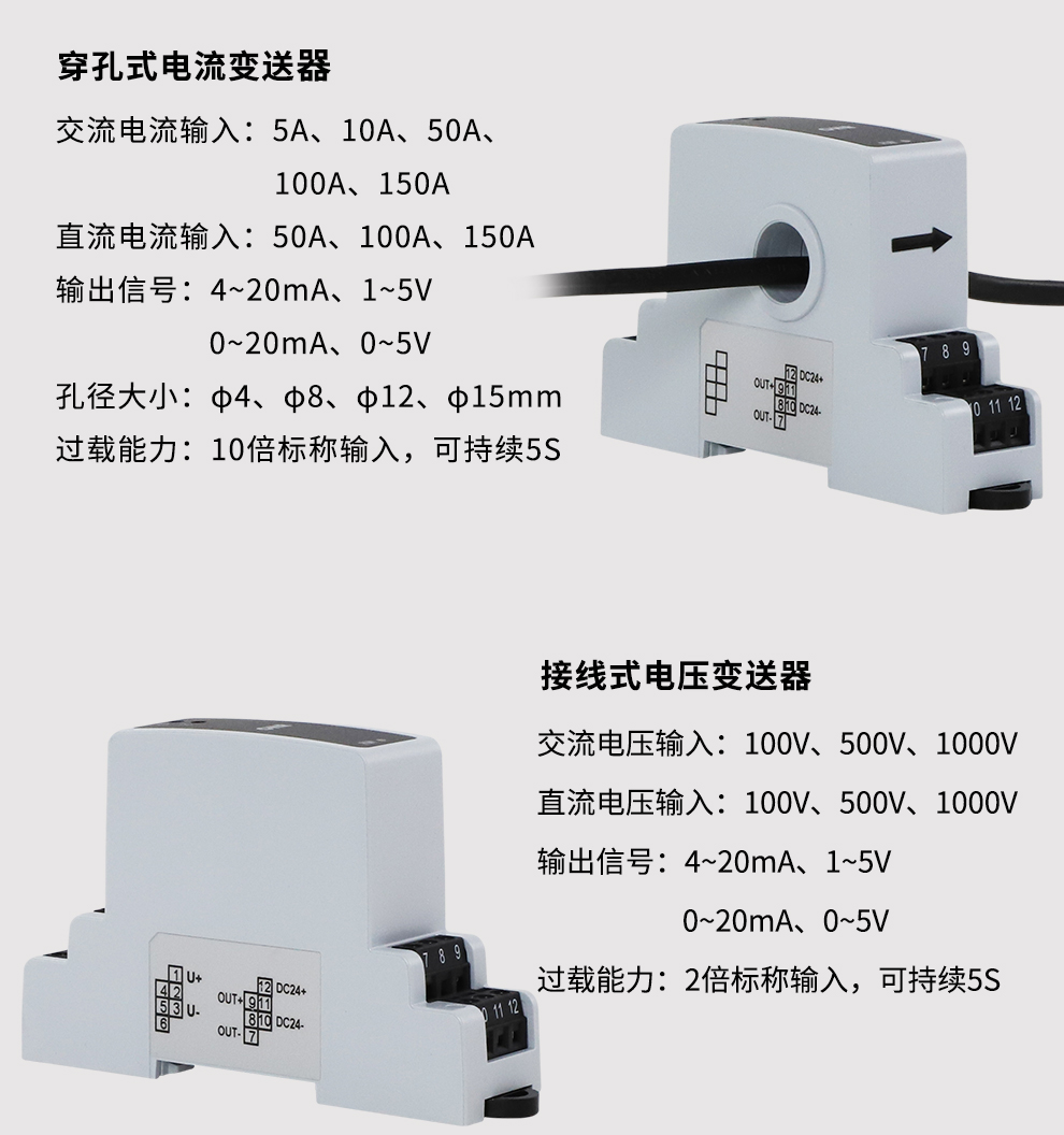 電流變送器/電壓變送器流線型外觀,簡約卡裝式結(jié)構(gòu),強抗干擾能力,高精準(zhǔn)測量