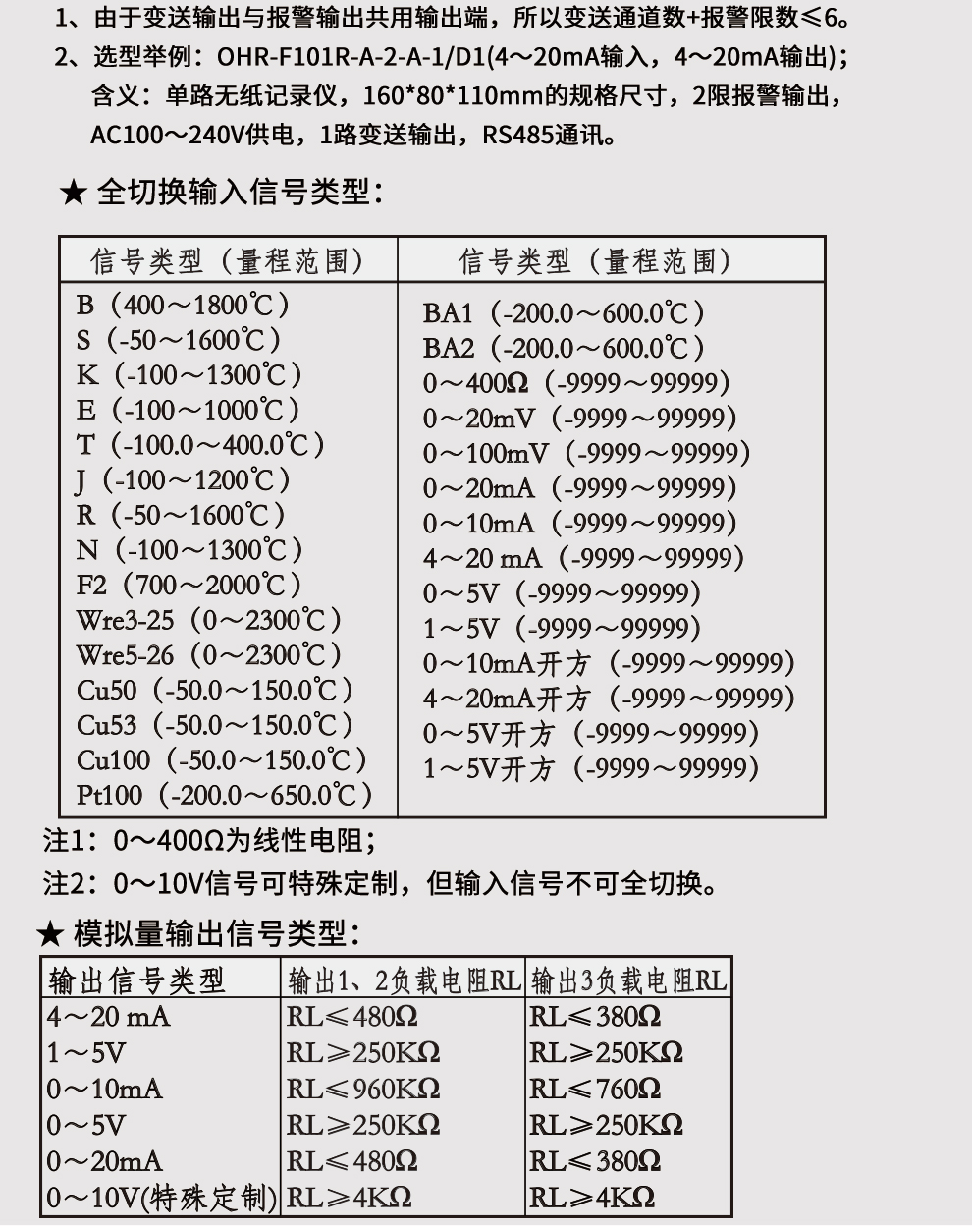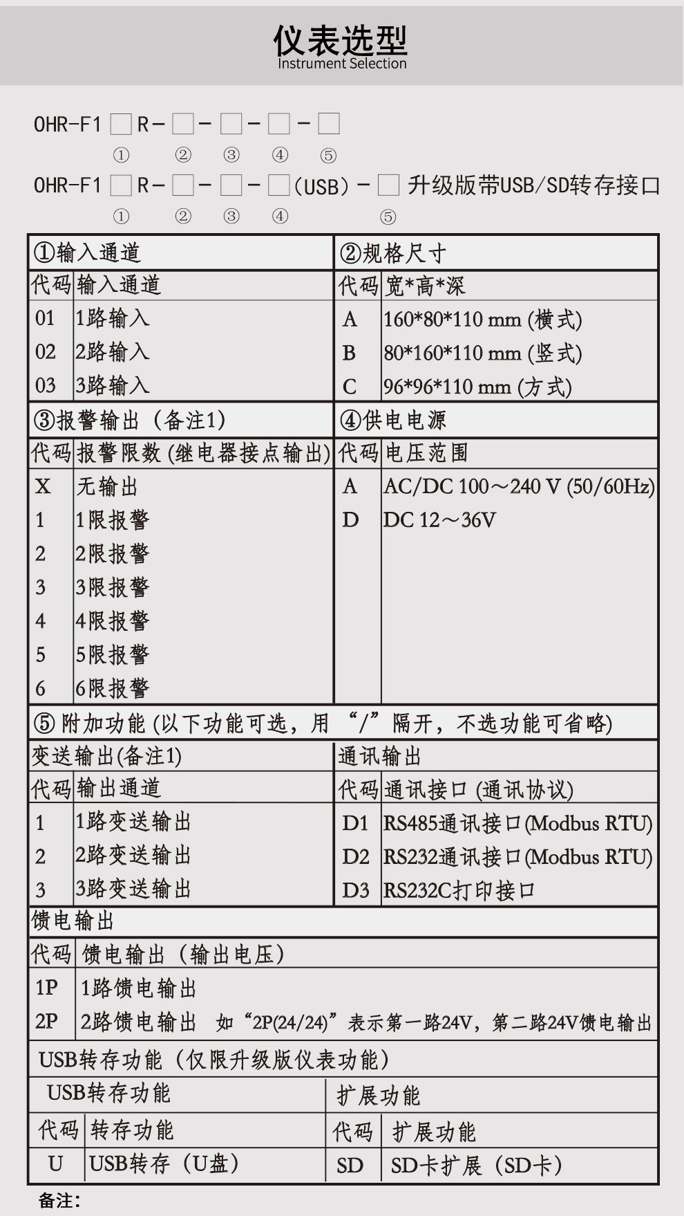 3、OHR-F100R系列無紙記錄儀(配套型)選型(鼠標右鍵另存下載)