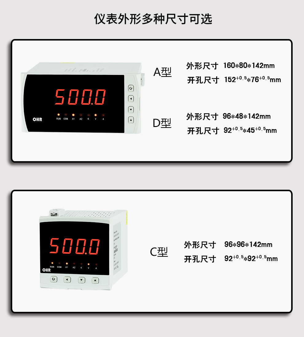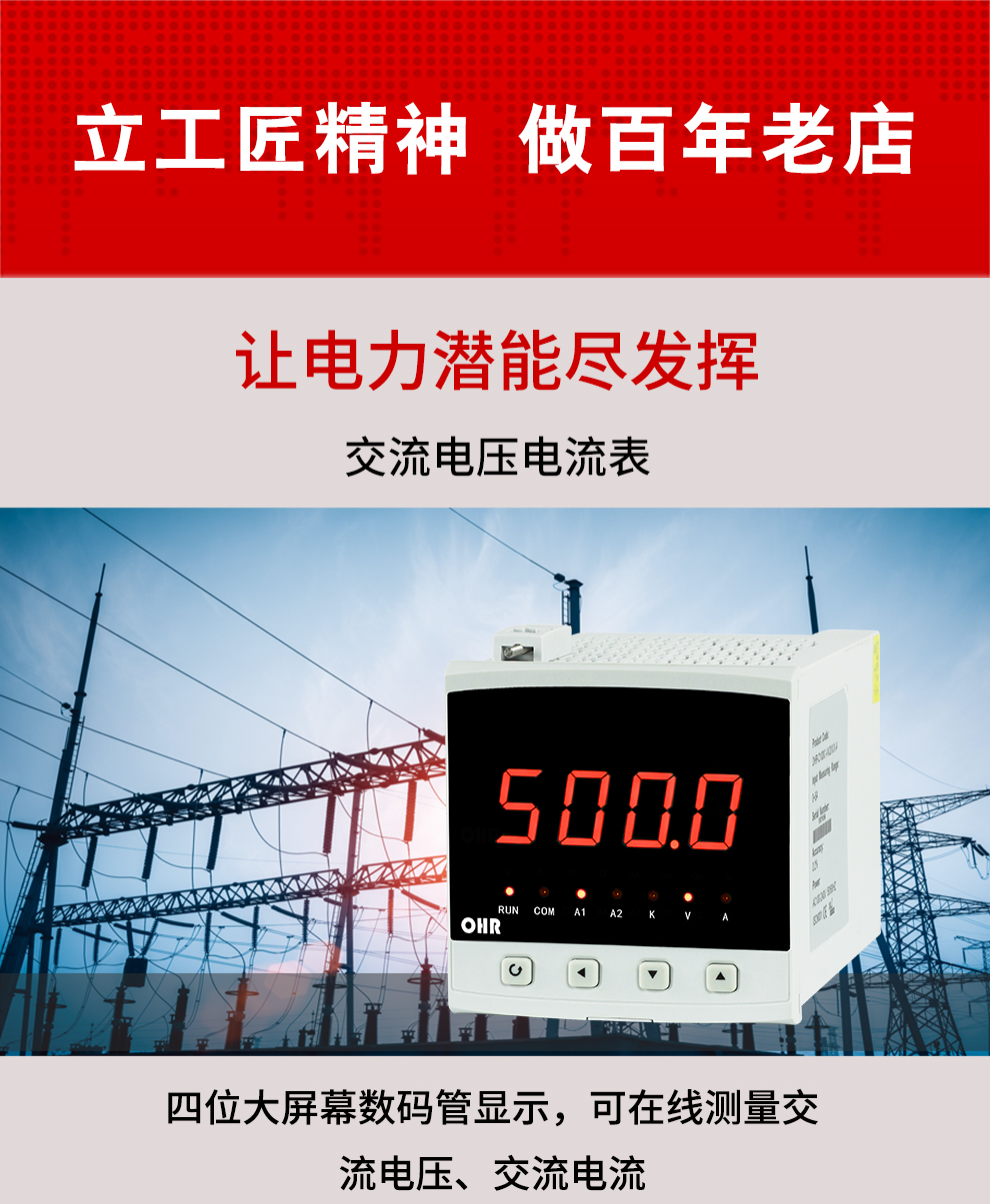 OHR-C200系列交流電壓/電流表為新 一代可編程智能儀表,它采用大規(guī)模集成電路,應用數(shù)字采樣技術(shù),對單相電氣線路中的電壓、電流進行實時測量、顯示和控制,并通過RS485接口或模擬量變送輸出接口對被測量電量數(shù)據(jù)進行遠傳。