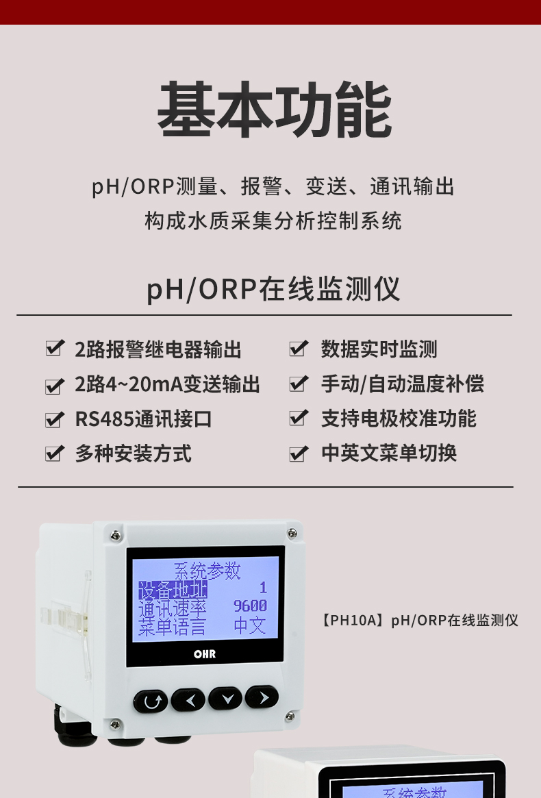 OHR-PH10A系列pH/ORP在線監(jiān)測儀