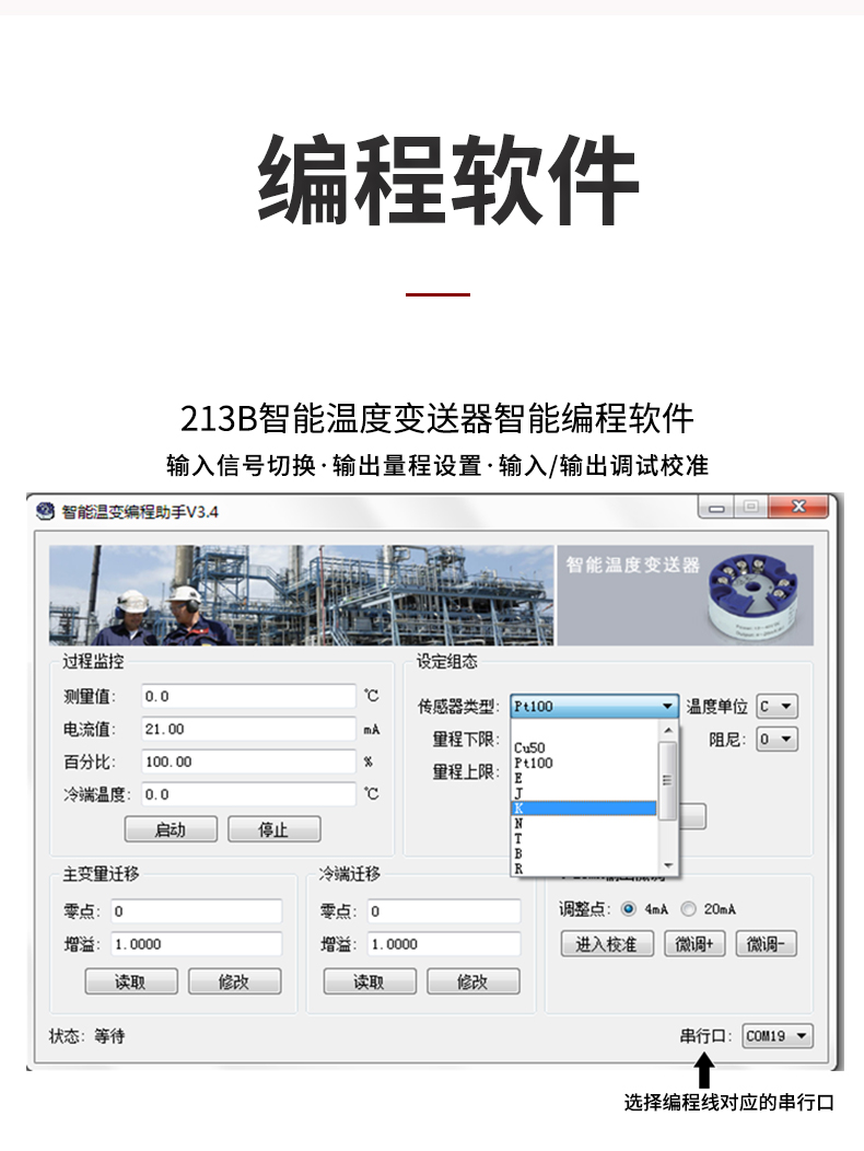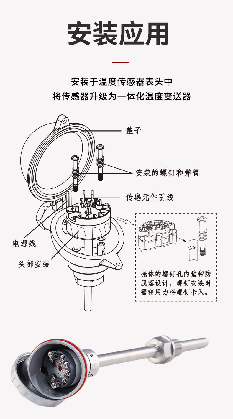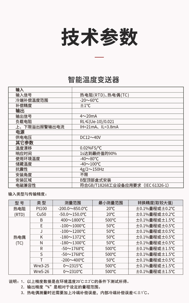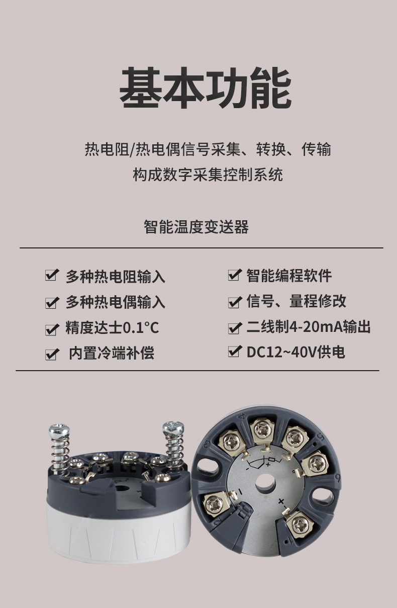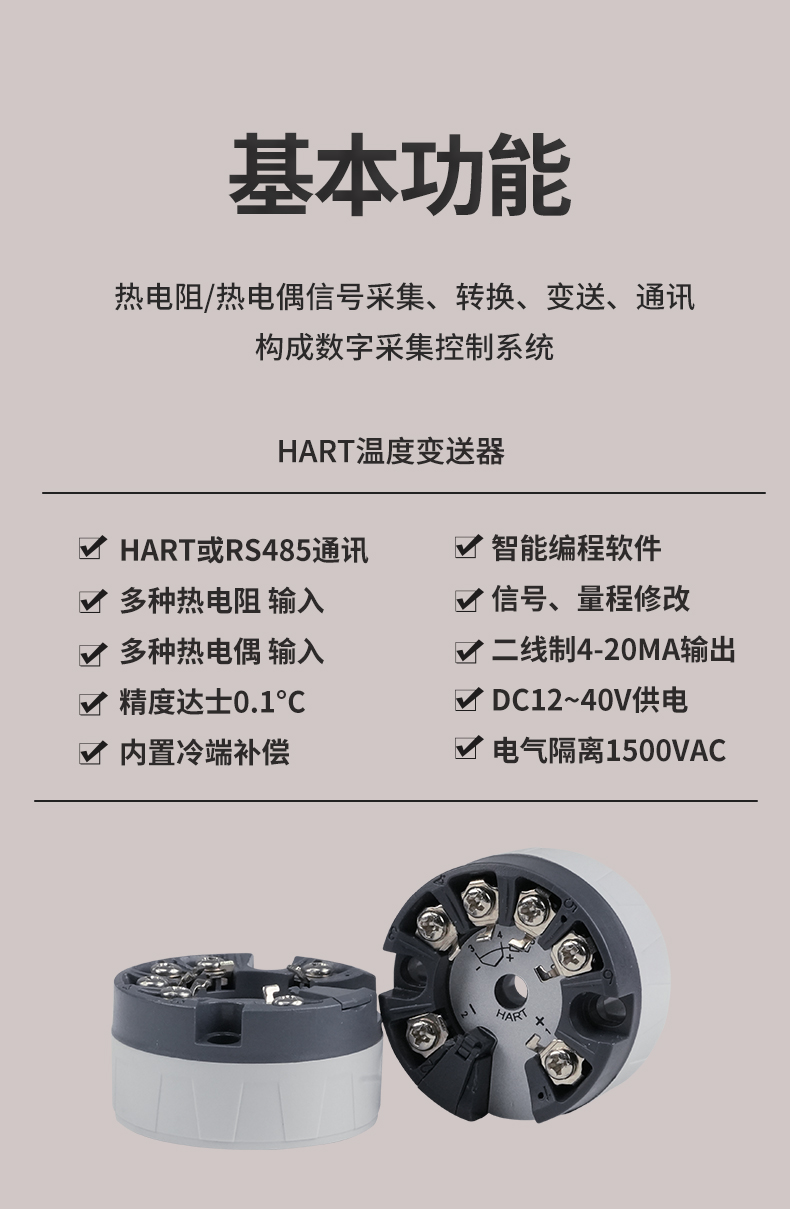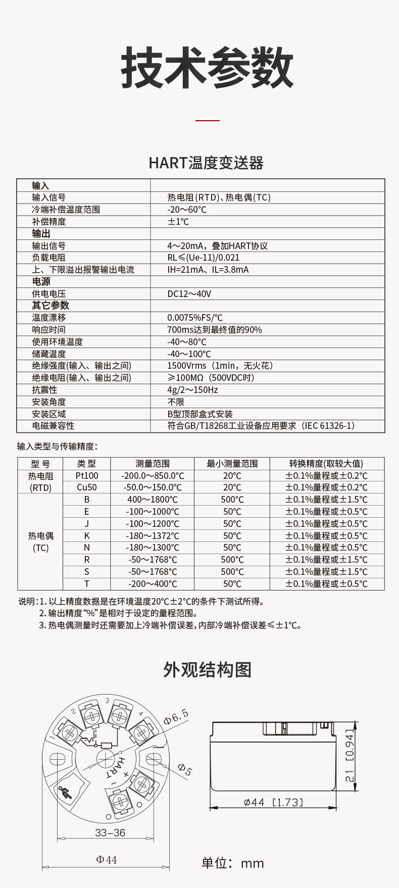HART智能溫度變送器(圓卡),用于熱電阻(RTD)、熱電偶(TC)信號輸入,二線制4~20mA模擬輸出,通過HART協(xié)議組態(tài),安裝于傳感器內(nèi)部(Form B)。