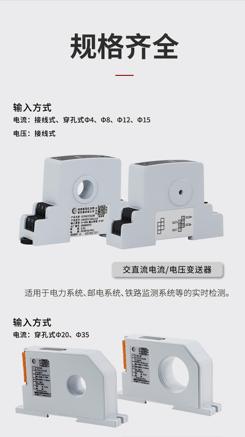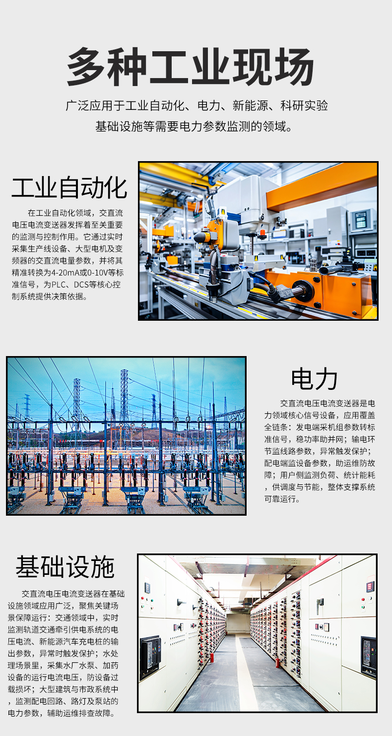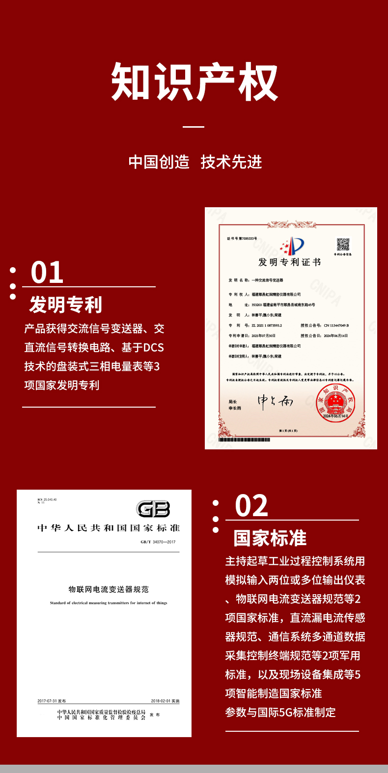 虹潤(rùn)公司是專(zhuān)業(yè)生產(chǎn)電流傳感器的國(guó)家專(zhuān)精特新“小巨人”企業(yè)。生產(chǎn)的交流電壓/電流變送器,具有交流電壓/電流輸入、高精準(zhǔn)測(cè)量、響應(yīng)速度快、高抗干擾、全隔離設(shè)計(jì)等特點(diǎn)。產(chǎn)品獲得一種交流信號(hào)變送器、交直流信號(hào)轉(zhuǎn)換電路、基于DCS技術(shù)的盤(pán)裝式三相電量表等3項(xiàng)國(guó)家發(fā)明專(zhuān)利,主持起草工業(yè)過(guò)程控制系統(tǒng)用模擬輸入兩位或多位輸出儀表國(guó)家標(biāo)準(zhǔn),直流漏電流傳感器規(guī)范、通信系統(tǒng)多通道數(shù)據(jù)采集控制終端規(guī)范等2項(xiàng)軍用標(biāo)準(zhǔn),以及現(xiàn)場(chǎng)設(shè)備集成等5項(xiàng)智能制造國(guó)家標(biāo)準(zhǔn),參與國(guó)際5G標(biāo)準(zhǔn)制定。產(chǎn)品廣泛應(yīng)用于工業(yè)自動(dòng)化、電力、新能源、科研實(shí)驗(yàn)基礎(chǔ)設(shè)施等需要電力參數(shù)監(jiān)測(cè)的領(lǐng)域。