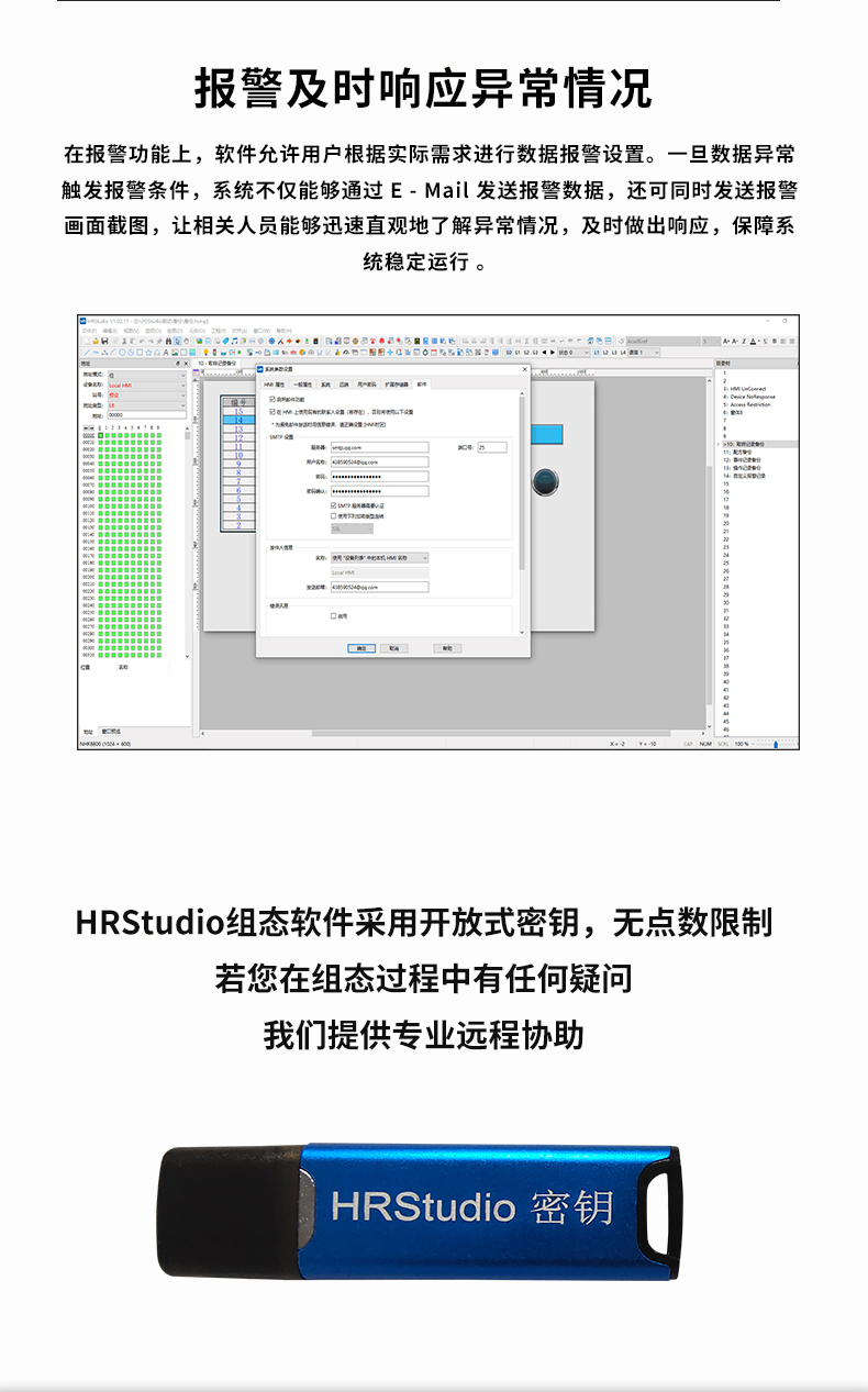 虹潤?HRStudio?組態(tài)軟件采用開放式密鑰,無點數(shù)限制;凡購買虹潤帶有 RS485/232、以太網(wǎng)通訊功能的儀表,單筆訂單滿 3800 元,即免費贈送HRStudio 組態(tài)軟件及對應(yīng)密鑰;若您在組態(tài)過程中有任何疑問,我們提供專業(yè)遠(yuǎn)程協(xié)助。