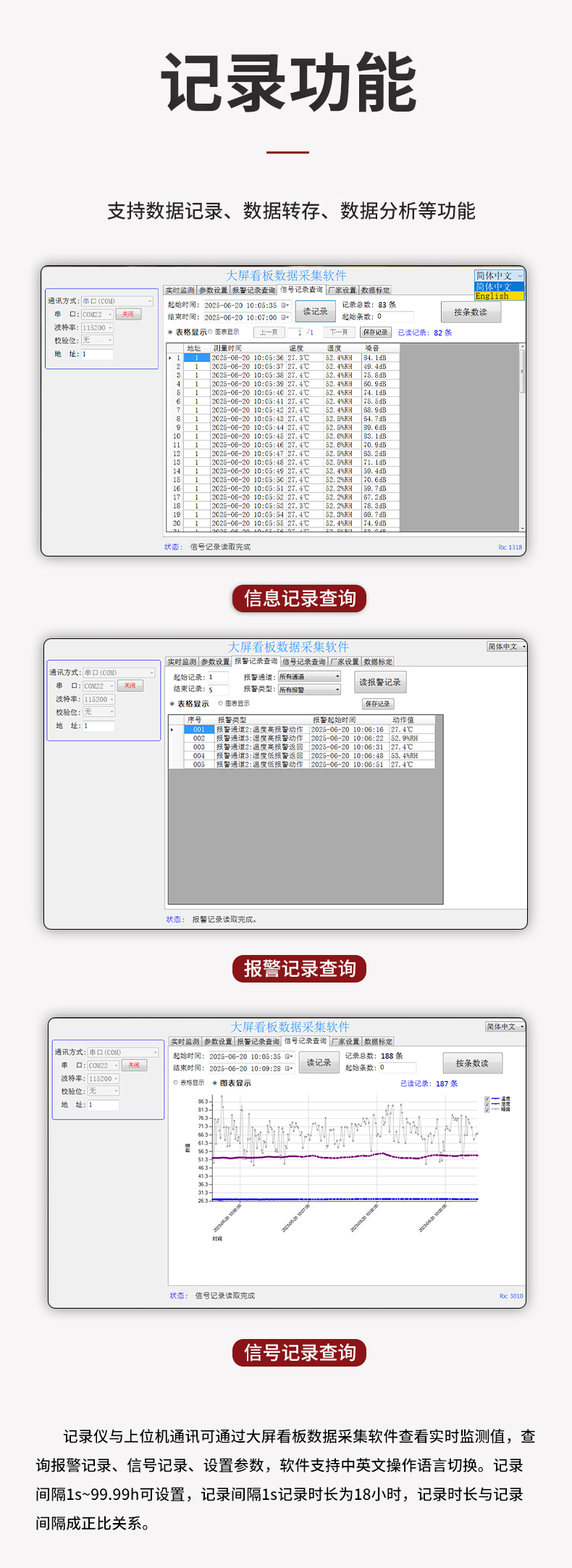 虹潤(rùn)公司是專業(yè)生產(chǎn)環(huán)境監(jiān)測(cè)儀表的國家專精特新“小巨人”企業(yè)。生產(chǎn)的大屏噪音溫濕度記錄儀,具有高清大屏顯示,數(shù)據(jù)記錄與轉(zhuǎn)存,同步觸發(fā)可靠預(yù)警,RS485或以太網(wǎng)通訊等特點(diǎn)。產(chǎn)品獲得一種手持式低功耗溫濕度檢測(cè)儀、無紙記錄儀等2項(xiàng)國家發(fā)明專利,主持起草物聯(lián)網(wǎng)智能溫度儀表通用技術(shù)條件、冷鏈溫度記錄儀等2項(xiàng)國家標(biāo)準(zhǔn),通信系統(tǒng)多通道數(shù)據(jù)采集控制終端規(guī)范軍用標(biāo)準(zhǔn),以及現(xiàn)場(chǎng)設(shè)備集成等5項(xiàng)智能制造國家標(biāo)準(zhǔn),參與國際5G標(biāo)準(zhǔn)制定,取得大屏幕溫濕度數(shù)據(jù)記錄儀等3項(xiàng)相關(guān)軟件著作權(quán)。產(chǎn)品廣泛應(yīng)用于電子制造、醫(yī)療科研、倉儲(chǔ)管理、畜牧養(yǎng)殖、建筑工程等諸多領(lǐng)域。